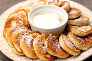 Put salt, sugar, soda, yogurt and a beaten egg into the flour. Stir everything and immediately bake in a frying pan preheated with oil, spreading the dough with a spoon dipped in water. Serve pancakes with sour cream, jam, honey.