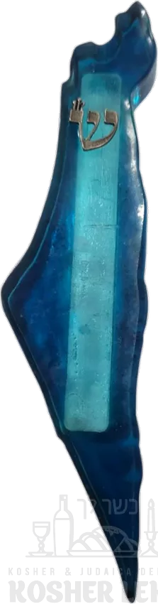 Epoxy mezuzah blue color patterned with the map of the Land of Israel