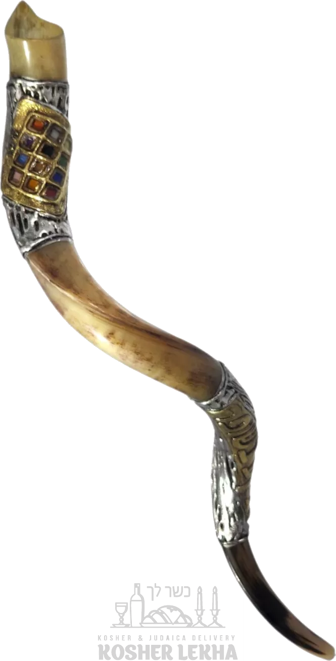 Silver-plated kudu shofar with a hosen pattern, handmade