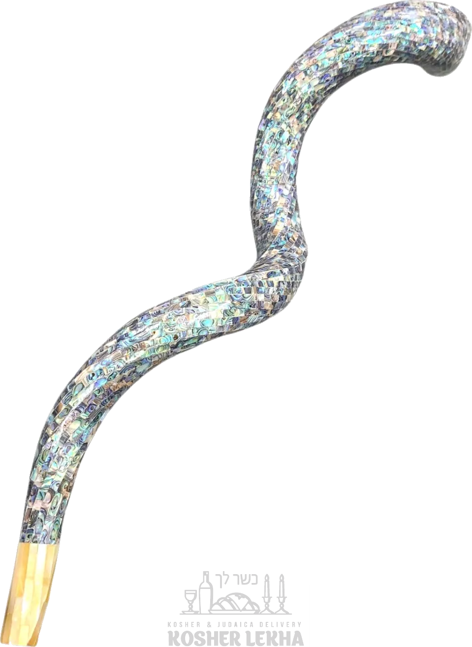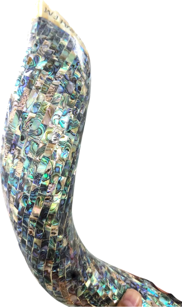 Shofar mother of pearls, green stones imported from Australia