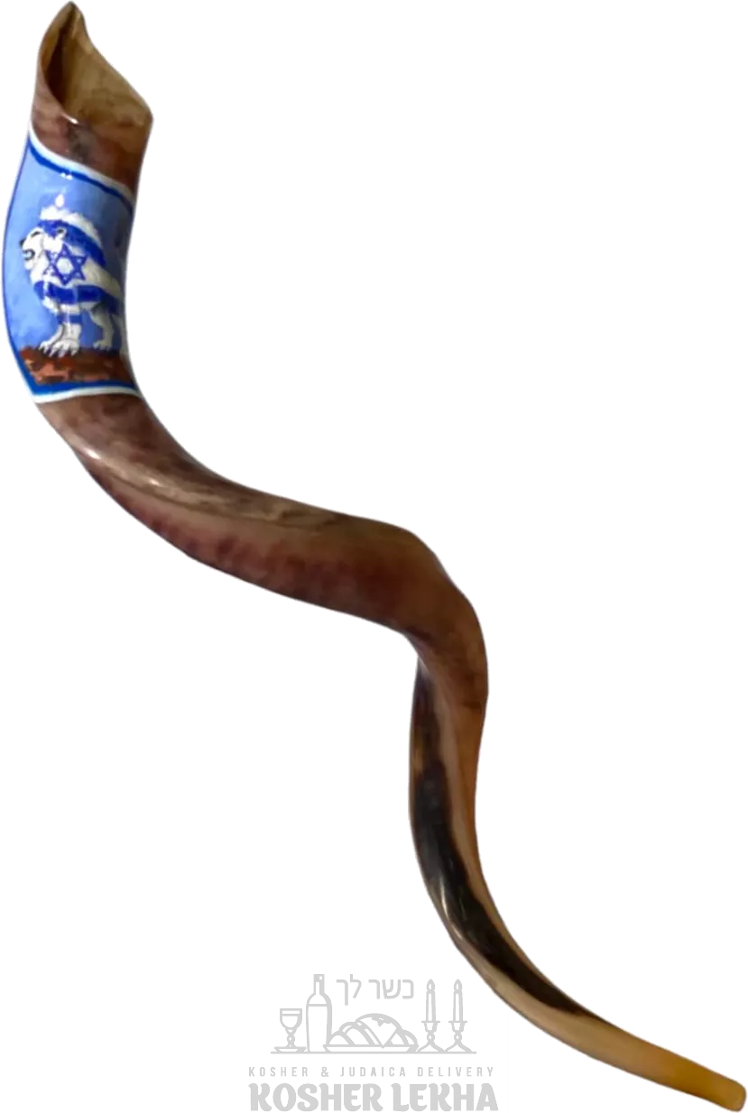Shofar kudu, Roaring Lion of Judah Wrapped in the Israeli Flag, handmade