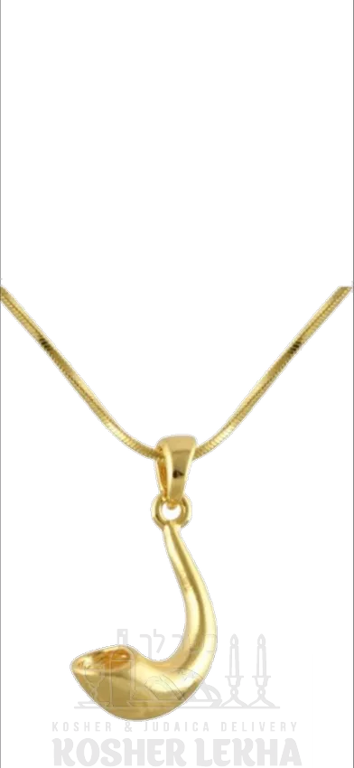 Necklace and pendant in the shape of a ram horn shofar, gold color