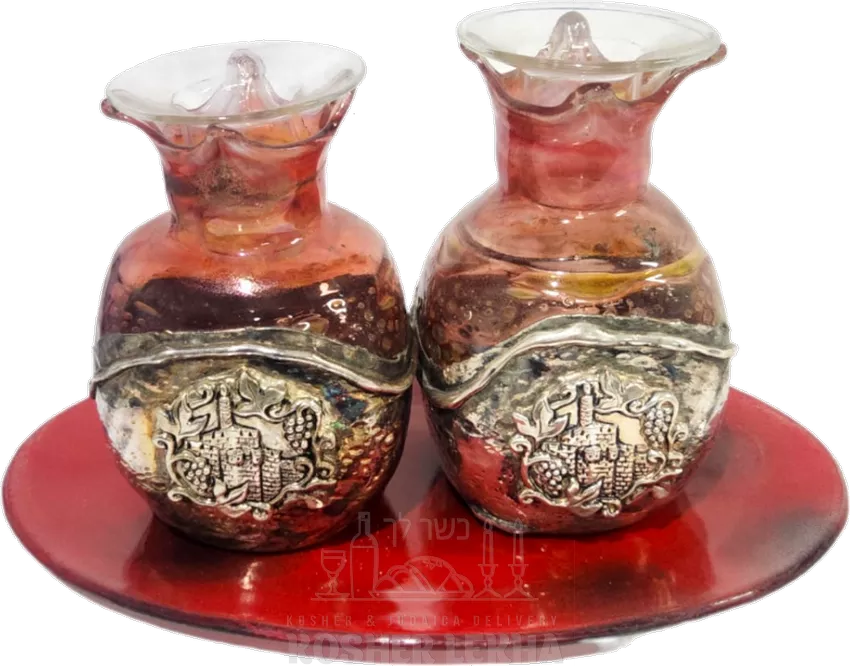 A pair of pomegranate-shaped candlesticks, made of silver-plated glass,red, handmade