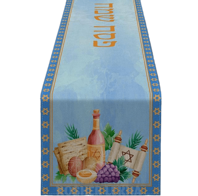 Table cloth, blue "Pesach Sameach", 33cm*200cm