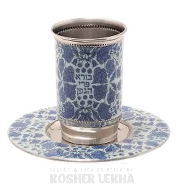 Tall Kiddush Glass - Metal + Design - Blue Flowers