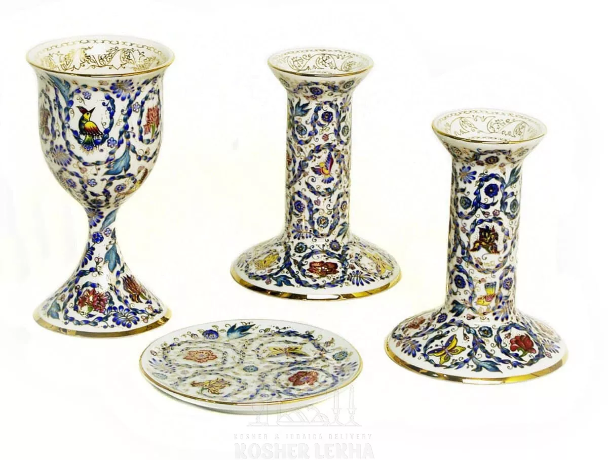 Set (glass, saucer, pair of candlesticks) "Paradise Garden" (author's work)