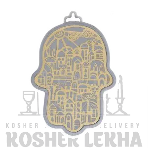 Large Silver Hamsa + Brass Metal Cutout - Jerusalem