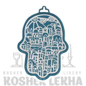 Large Blue Hamsa + Metal Cutout - Jerusalem