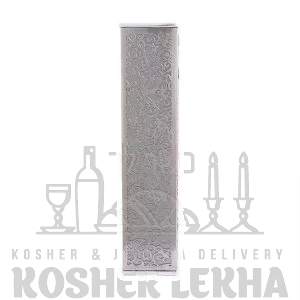 Wide Mezuzah + Metal Cutout - Pomegranate - Stainless Steel