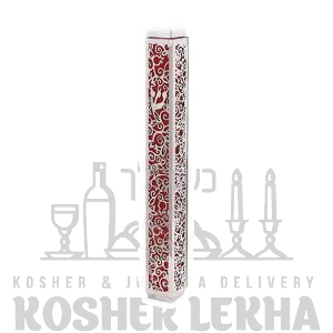 Mezuzah + Metal Cutout - Pomegranate - Red