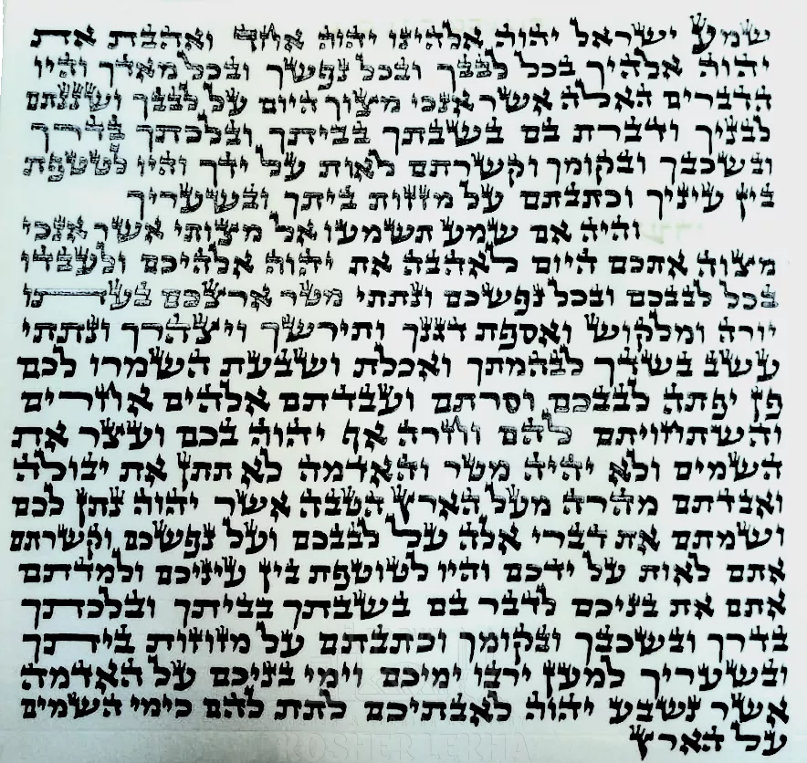 Parchments with text for mezuzahs were checked by a rabbi. According to Jewish law, it is recommended that the mezuzah be examined by a qualified soifer once every few years. What is a mezuzah made of? Parchment made from genuine leather of a ritually pure animal, on which a certified scribe writes two fragments of the Torah text: the first is “Shema Yisrael” (Devarim 6:4-9). And the second: “And it will be like this: if you obey” (ibid., 11:13-21). On the reverse side of the parchment is written the word “ShaDai”, one of the names of G-d, which stands for “Shomer Dlatot Yisrael (“Guardian of the Doors of Israel”).” Writing the mezuzah: must be written by an experienced and certified scribe of