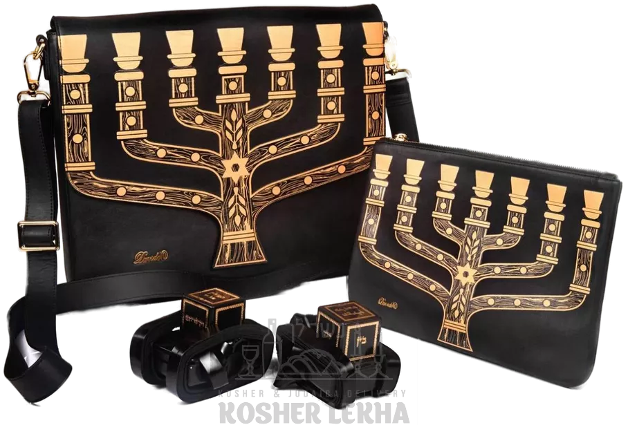 The author's set for talit and tefillin Magen David Menorah, Genuine leather