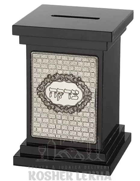 Central square made of wood with metal insert, height 13cm