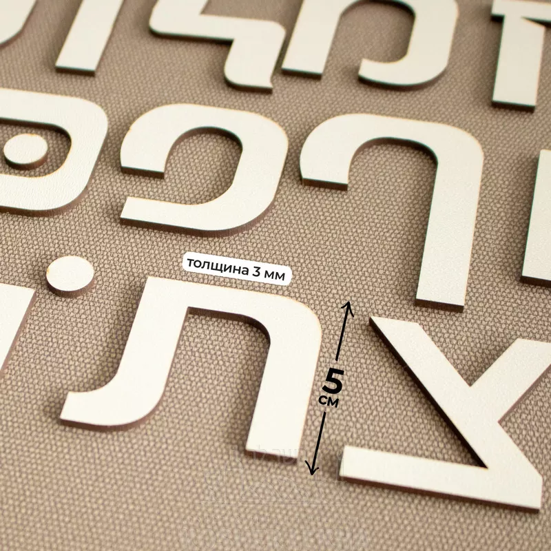The set provides an increased number of letters so that it is possible to compose words. The set includes 62 letters, each of which has a size of 5 cm and a thickness of 3 mm.