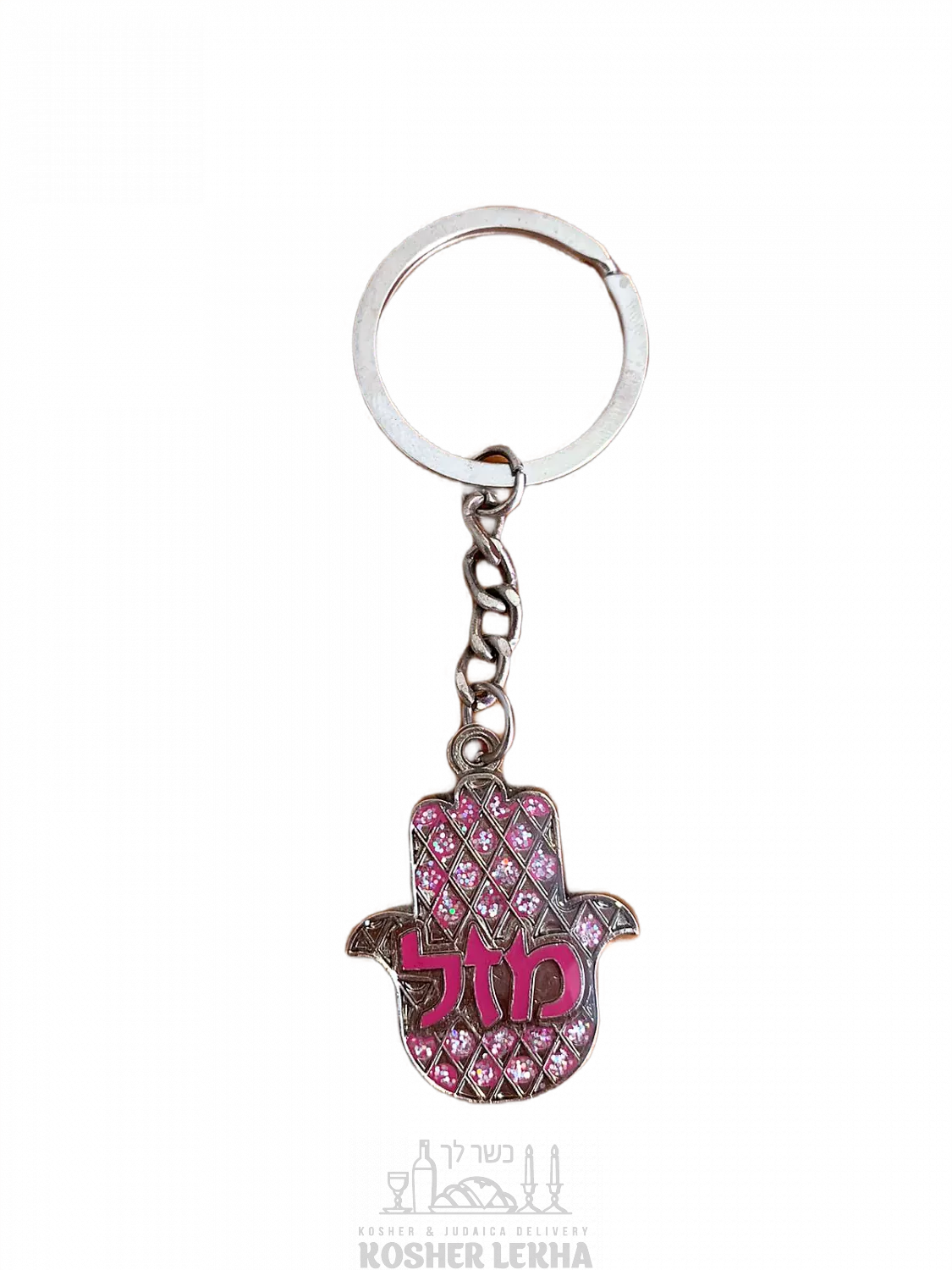 Keychain "Mazal" with road prayer (pink)